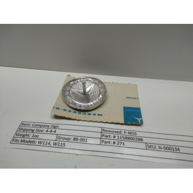 Mercedes Benz W115 Company Sign,Grill Badge,W114,NOS, #1158800288,Series 1