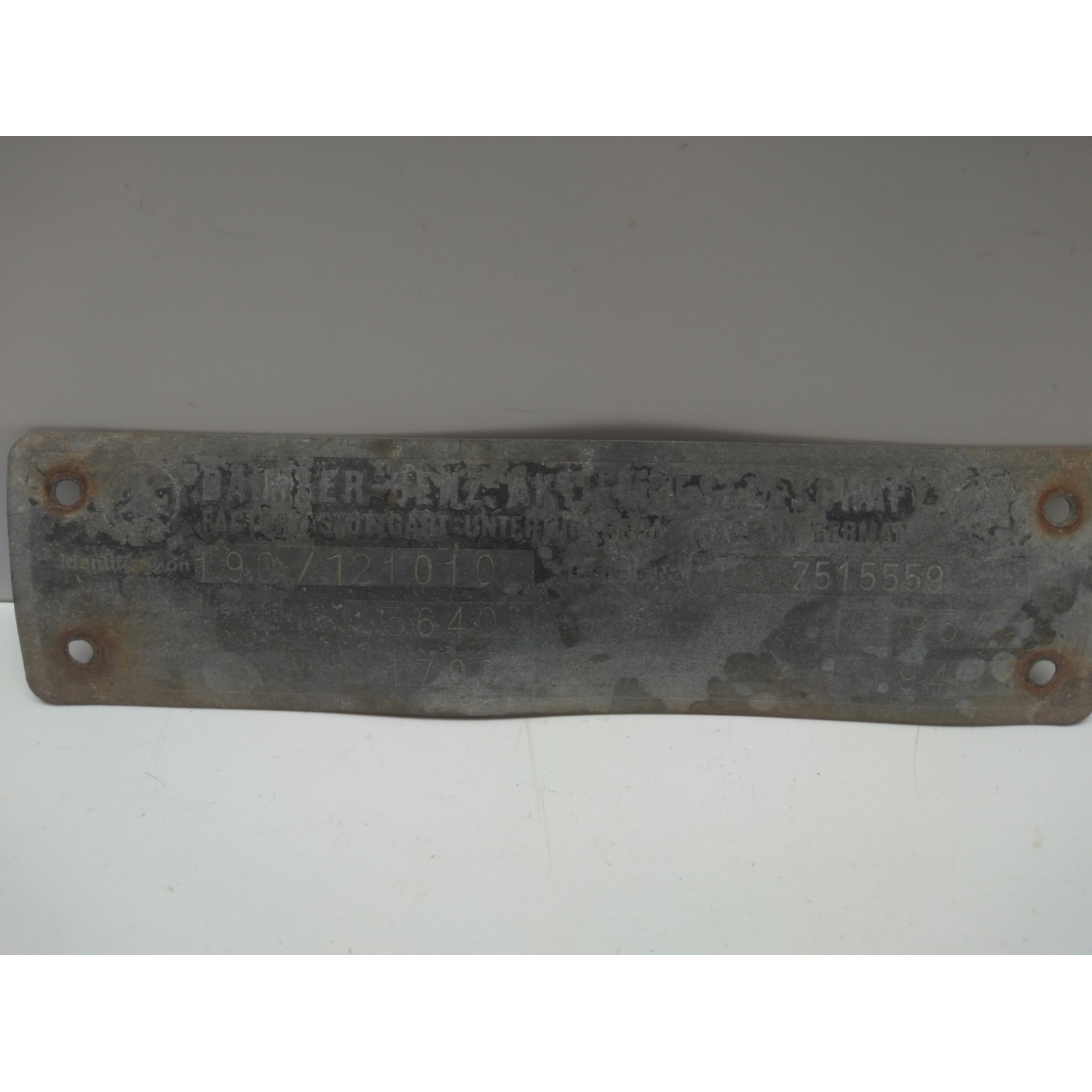 Shows wear and age. A Id tag from a W121 190 Mercedes Benz.